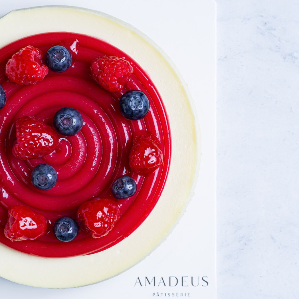 A berry, dairy delectable dessert! Baked, smooth cheesecake on a bed of Graham cracker crust topped with fresh seasonal berries. Created with a perfect harmony of fruit and smooth, creamy cookie texture.